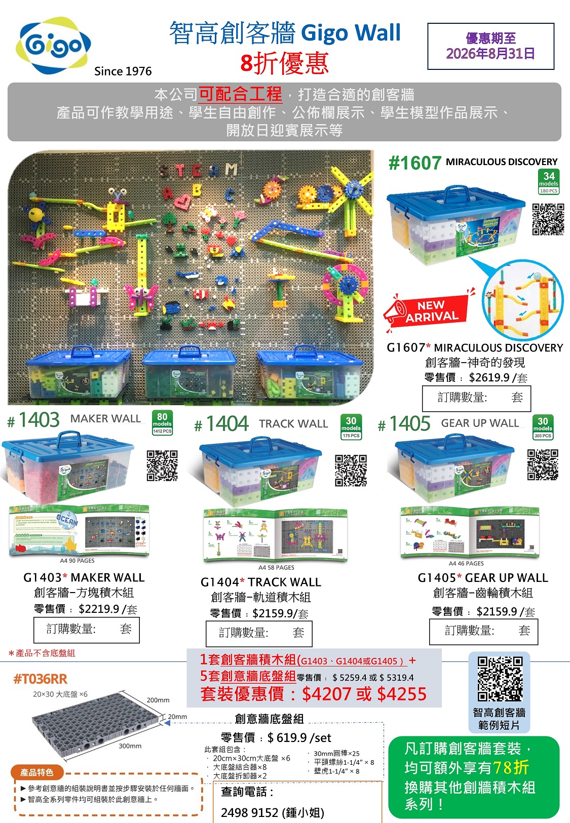 幼稚園/ 中心 教材優惠 (Gigo - 創意牆) 優惠期至2026年8月31日