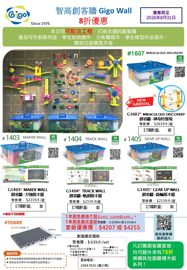 幼稚園/ 中心 教材優惠 (Gigo - 創意牆) 優惠期至2026年8月31日