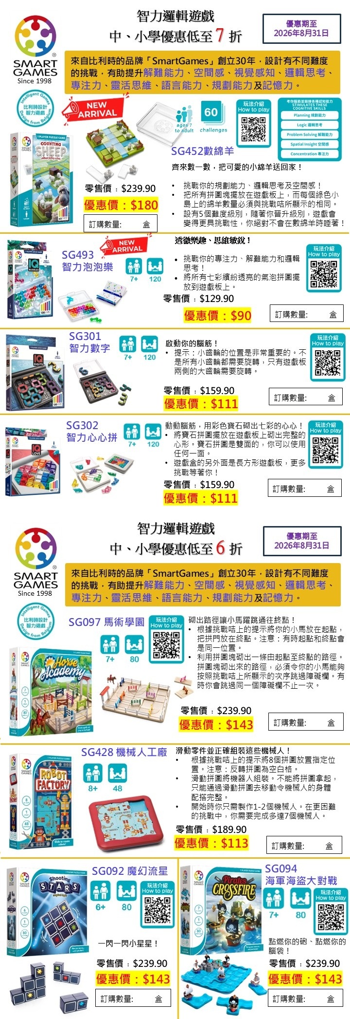 小學 教材優惠 (SmartGames) 優惠期至2026年8月31日