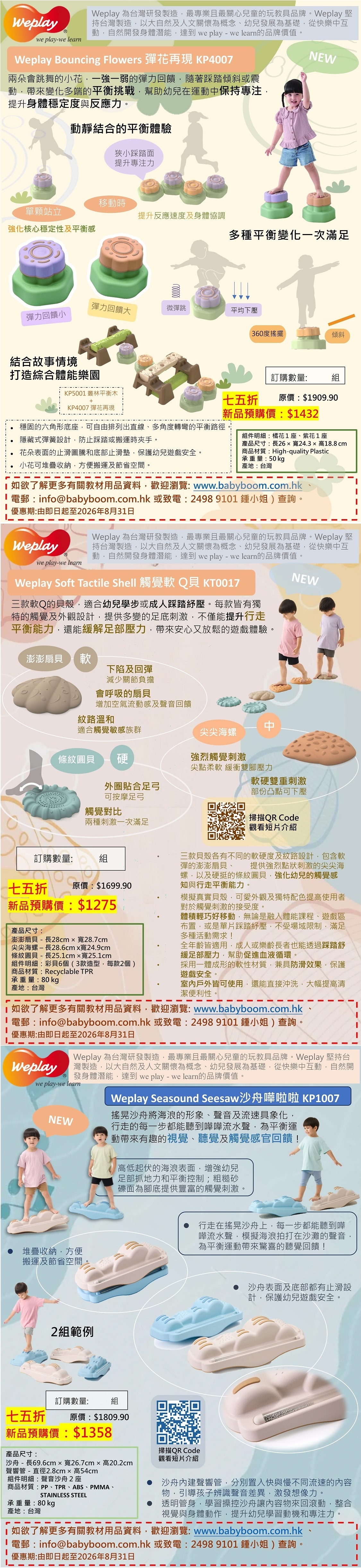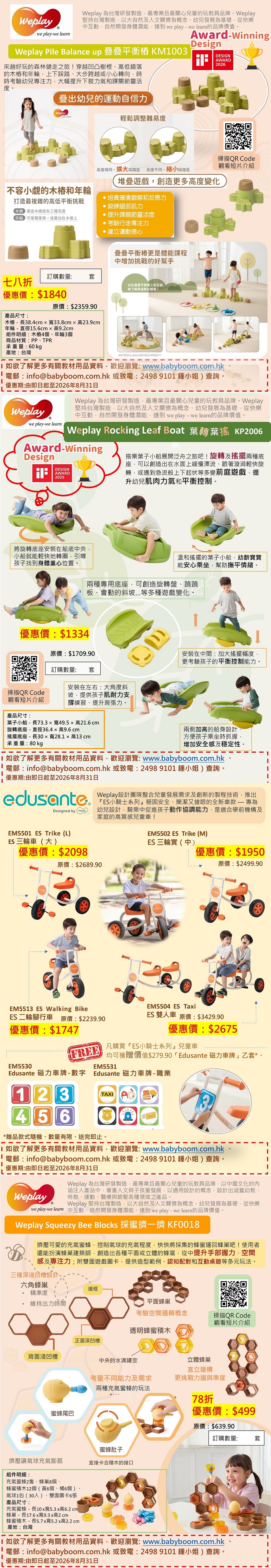 幼稚園/ 中心 教材優惠 (Weplay - 感覺統合系列 1) 優惠期至2026年8月31日